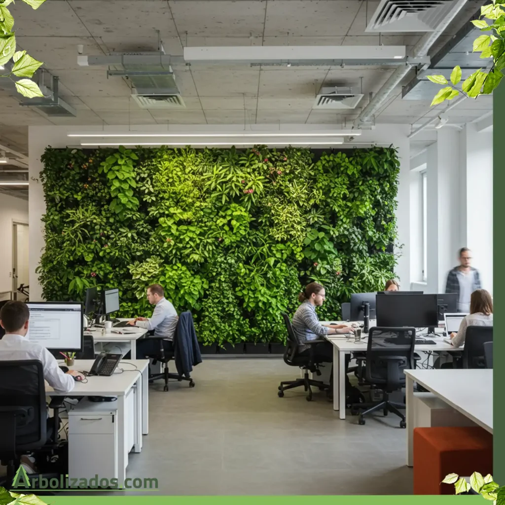 Los jardines verticales en oficinas no solo embellecen el espacio, sino que también mejoran la calidad del aire y reducen el estrés. Instálalos en áreas comunes o cerca de las estaciones de trabajo para crear un ambiente más saludable y productivo.
