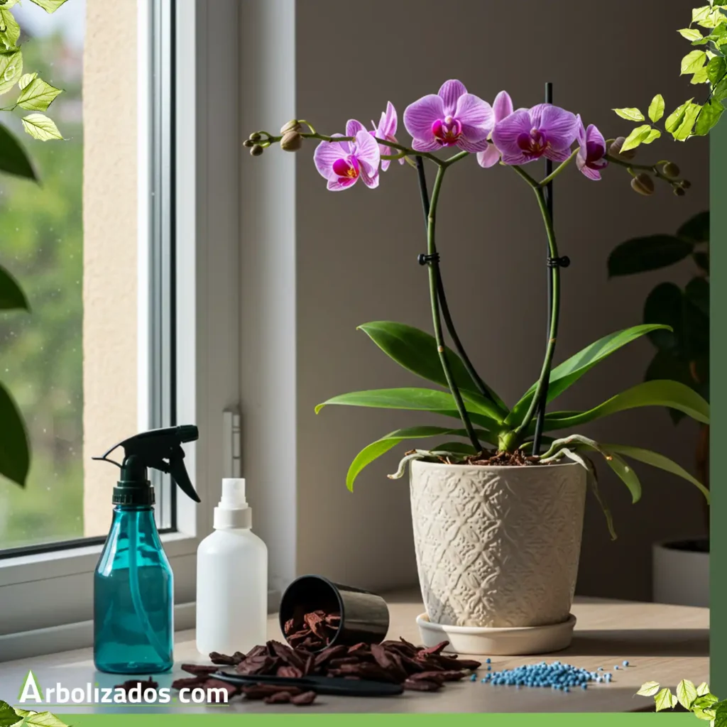 El sustrato adecuado para las orquídeas debe permitir un buen drenaje y aireación. Mezclas de corteza de pino, carbón vegetal y perlita son comunes. Algunas especies epífitas pueden cultivarse en montajes de corcho o madera.