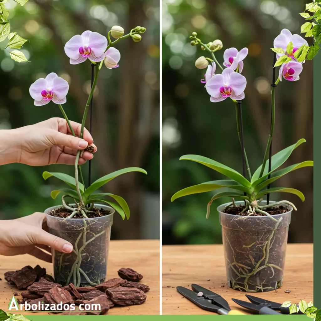 El trasplante de orquídeas debe realizarse cada dos o tres años, o cuando el sustrato se descompone y pierde su capacidad de drenaje. Es mejor trasplantar después de que la planta haya terminado de florecer.