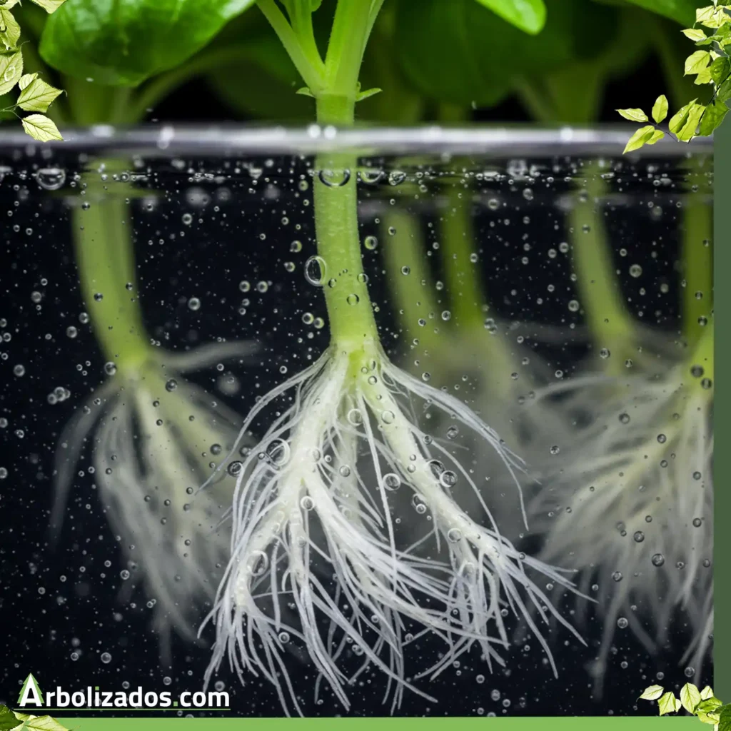 En la aeroponía, las raíces están suspendidas en el aire y se nebulizan con solución nutritiva. Este sistema ofrece un crecimiento rápido y eficiente, pero requiere una inversión inicial mayor. Boquillas de 50 µm nebulizan cada 5 min durante 30 segundos; un temporizador cíclico es vital para no dejar secar las raíces.
