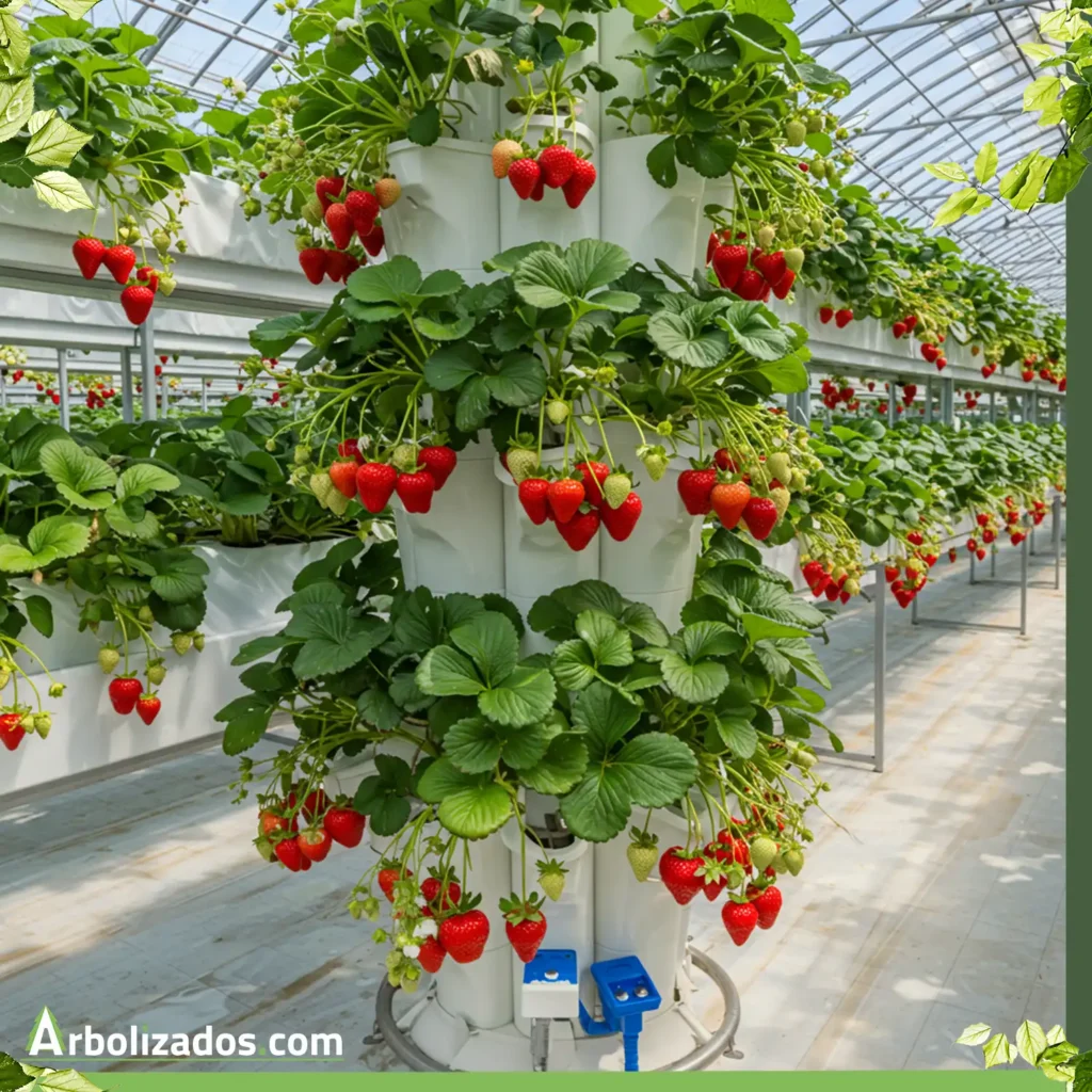 Las fresas se adaptan bien a la hidroponía y producen frutos jugosos y sabrosos. Requieren cuidados específicos en términos de luz y temperatura. ‘Albion’ y ‘San Andreas’ producen de forma continua; requieren 12–14 h de luz y temperaturas de 18–22 °C.